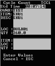 Pulse Intro. Si procede, la aplicación envía la primera tarea de inventario rotativo al empleado Aparece la pantalla Inventario rotativo (TCC1).