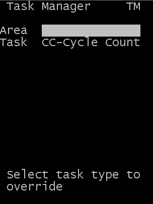 En el menú principal del dispositivo de RF, seleccione Administración de Tareas. Se muestra la pantalla Administrador de tareas (TMM).