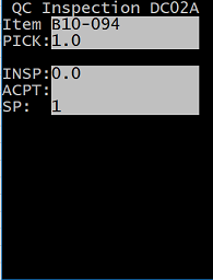 Escanee el artículo que desea inspeccionar. Se muestra la pantalla Inspección de CC (DC02A).