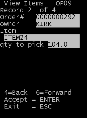 Numérisez ou entrez le numéro de commande à consulter, puis appuyez sur Entrée. L'écran Voir articles (OP09) s'affiche.