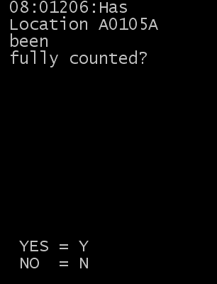 - Entrez N (Non) pour confirmer que l'emplacement est vide. L'écran Ex. tâche suiv. s'affiche.