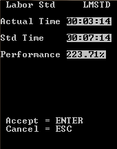 Si le module WMS Ressources est activé, l'heure standard de la tâche s'affiche à l'écran.