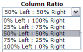 - Pour afficher les informations dans deux sections égales, sélectionnez 50% Gauche : 50% Droite. Si vous ne voulez pas afficher plusieurs colonnes, utilisez l'option 0% Gauche : 100% Droite ou 0% Droite : 100% Gauche (les deux options exécutent la fonction si les affichages de colonnes sont correctement configurés).