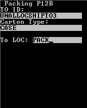 Scannez ou indiquez l'A ID et appuyez sur Entrer deux fois. L'écran Emballage (P12B) s'affiche.