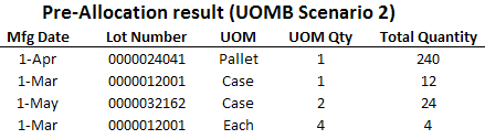 単位分割を使用した引当 (割り当てられた前方ピックロケーションは不使用)