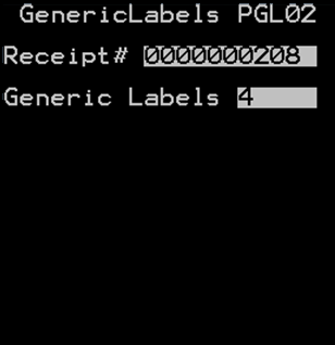 - 選択された ASN の一般 LPN ラベルを印刷するには、[F4] を押します。[GenericLabels (PGL02)] 画面が表示されます。