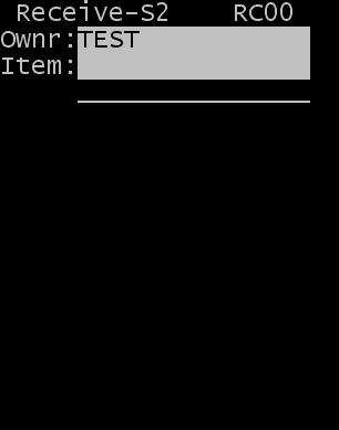 入庫を開始するには、[Enter] キーを押します。[入庫-S2 (RC00)] 画面が表示されます。