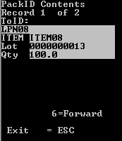 扫描或指定订单号,然后按“Enter”键两次。将显示“输入托盘号 (P18A)”屏幕。