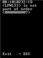 - 如果扫描或指定订单上不存在的托盘号,系统会显示一条信息,指明托盘号不是订单的一部分。