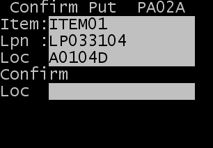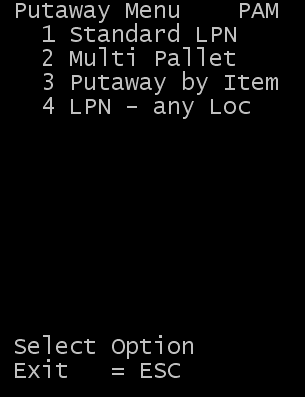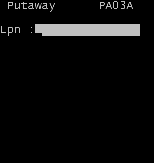 - Select Standard LPN. The Putaway (PA03A) screen is displayed.