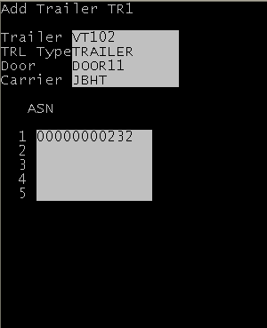Use this screen to create a new trailer, to associate the trailer with a door and a carrier, and to assign multiple ASNs to the trailer.