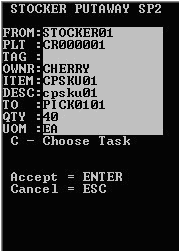 Once the pallet has been moved to the final PND location, the stocker tasks are made available through Task Manager. A different associate usually performs these tasks.