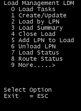 - Select Load Management. The Load Management (LDM) menu is displayed.