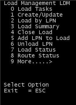 - From the Load Management (LDM) menu, select Add LPN to Load.