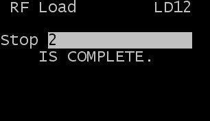 - When the current stop is complete, the RF Load (LD12) screen is displayed.