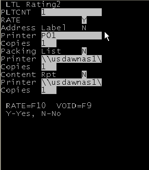 - Press F10 to send a Rate request to Infor SPS or press F9 to void the previous rate request for the same LTL shipment.