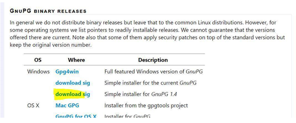 - Click https://www.gnupg.org/download/index.html. The GnuPG download screen is displayed.